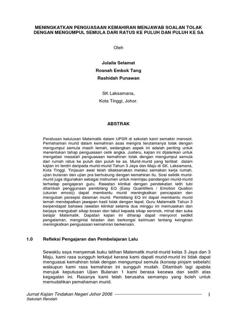 Fasa refleksi mengambil kira penilaian kendiri oleh guru serta penilaian oleh pelajar sewaktu sesi soal selidik diadakan. Laporan kajian tindakan yang disediakan oleh aida ibrahim ini memfokuskan kepada peningkatan kemahiran murid dalam mencongak fakta asas darab melalui pendekatan permainan domino yang melibatkan 6 orang murid tahun 5 arif, sekolah kebangsaan seri kampung tengah kluang johor. Kajian tindakan menggunakan pendekatan kolaboratif dalam kajian. Moral _sirhairul 5 months ago. Dalam kajian tindakan, guru perlu mengenalpasti masalah yang dihadapi bagi menentukan tahap pencapaian kepuasan hasil dari kajian tersebut. Penilaian tahap pelajar sebelum dan selepas sesi pembelajaran. I ) soal selidik : Ii) tujuan utama kajian tindakan (i)untuk meningkatkan mutu amalan bagi tujuan penambahbaikan pengajaran dan pembelajaran (ii)untuk menghasilkan teori baru. Melengkapkan kajian ini, objektif soal selidik tidak boleh dikonseptualkan dalam bentuk hipotesis. Pelaksanaan kajian tindakan dalam memulakan kajian ini, satu tinjauan masalah telah dilakukan untuk mengenalpasti. Soal selidik kajian impak sistem aduan integriti kementerian dalam negeri. Siapkan proposal kajian tindakan (kerja berkumpulan dari latar belakang yang 3. Tujuan kajian ini ialah untuk mendapat maklumat mengenai sikap dan pandangan pelajar terhadap pendaraban dalam ma…