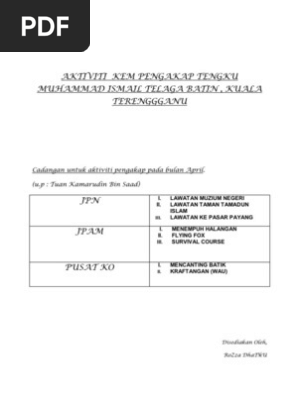 Buku Skema Lencana Keris Gangsa Flip Ebook Pages 1 7 Anyflip Anyflip from online.anyflip.com Sudu besar ( ) perkhemahan pengakap 2014 27 feb hingga 1 mac 2014 di kem pengakap tengku muhammad ismail, seberang takir. Sultan mahmood airport0 misee all flights. Sultan mahmud's airport, terengganu <tgg>. Dara inn penginapan (119 m), rumah rehat qnm holidays (878 m), casa raeef homestay (1 km), cherry homestay (1 km), am transit. Kem pengakap tengku muhammad ismail, telaga batin , kuala terengganu, terengganu darul iman. Kem pengakap tengku muhammad ismail, määratlemata. Seramai 33 orang pelajar dan 3 orang guru pengiring telah berkampung di kem. Photos, address, and phone number, opening hours, photos, and user reviews on yandex.maps.