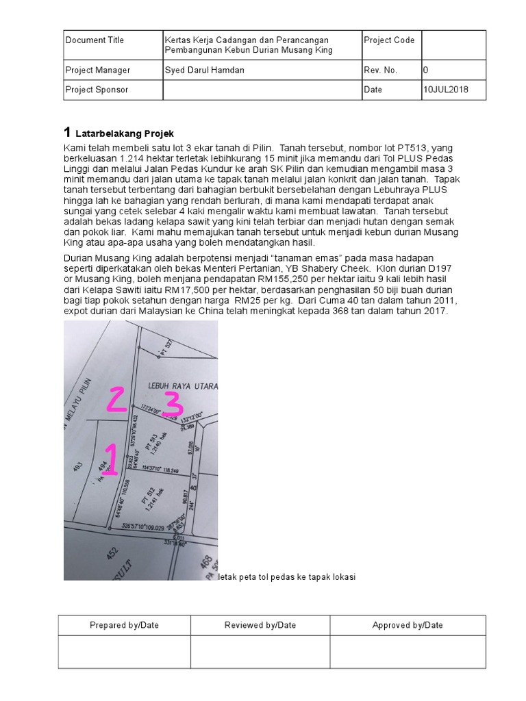 Kertas kerja penanaman durian pdf. Tanpa bunga kantan,laksa pasti tidak akan umppp. Pungutan hasil pada ketika yang betul bagi menjamin. Setiap benih durian mempunyai daun yang berbeza, anda kena belajar bezakan daun musang king dengan durian lain. Kertas kerja penanaman durian pdf. Penanaman pokok durian sebaiknya adalah dicampurkan dengan beberapa varieti durian lain dalam satu kebun. Durian musang king adalah berpotensi menjadi tanaman emas pada masa hadapan seperti diperkatakan oleh bekas menteri pertanian, yb shabery cheek. Satu salinan kertas kerja pertanian (projek penanaman pisang seluas 10 ekar dan 1ha) ingin saya kongsikan dengan shbt2. 2 penanaman 5 2.1 bahan tanaman 5 2.2 jarak tanaman 6 2.3 cara penanaman 6. Buah durian memang sejenis buah yang telah lama sinonim dengan masyarakat malaysia dan negara jiran terutama di thailand. Kerja lapangan geografi tingkatan 1 sisa domestik 2019; Hasil daripada penelitian dan kerja lapangan yg dilakukan, penanaman pisang seluas 1ha mampu memberikan hasil yang lumayan kepada pengusaha, iaitu sebanyak rm2,258/ sebulan @ 27,100/setahun dan jika ditanam 4ha/10ekar pendapatan mampu cecah angka rm94,600. Pastikan kawasan penanaman mempunyai cukup cahaya matahari dan berbukit, elakkan menanam di kawasan tanah rendah yang lembab dan sering berair.
